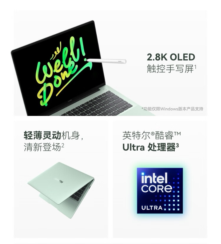 2.8K OLED触控屏 轻薄灵动机身 酷睿Ultra高性能处理器