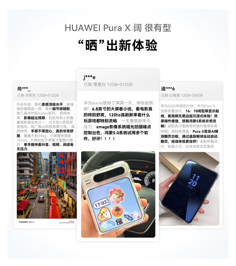 HUAWEI Pura X 12GB+512GB 月影灰 1610阔型屏 鸿蒙操作系统5 红枫原色影像 折叠屏手机 华为鸿蒙智能手机
