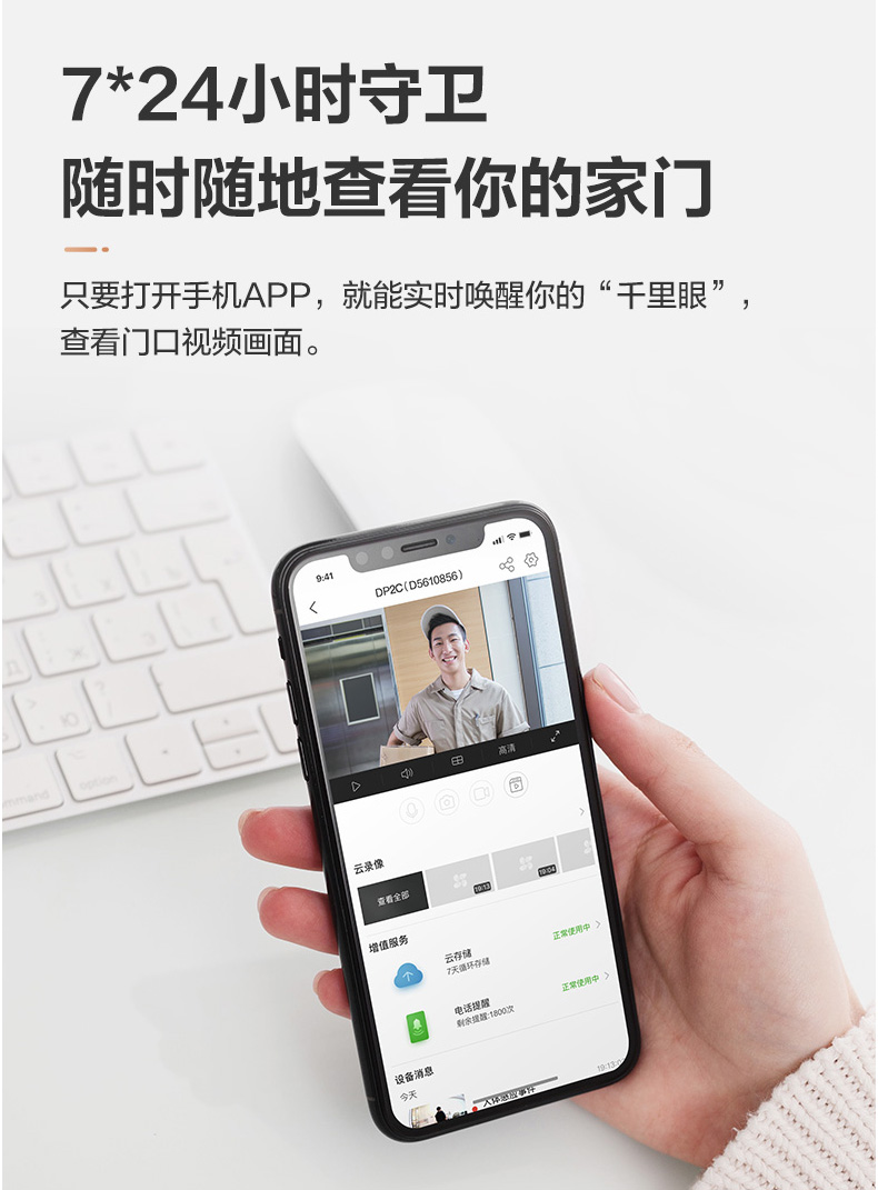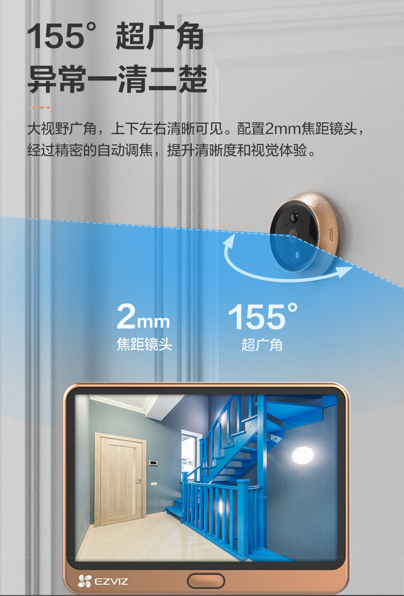 海康威视-萤石DP2C超清300万(128G)智能电子猫眼/可视门铃 防盗家用 监控摄像头 双向对讲