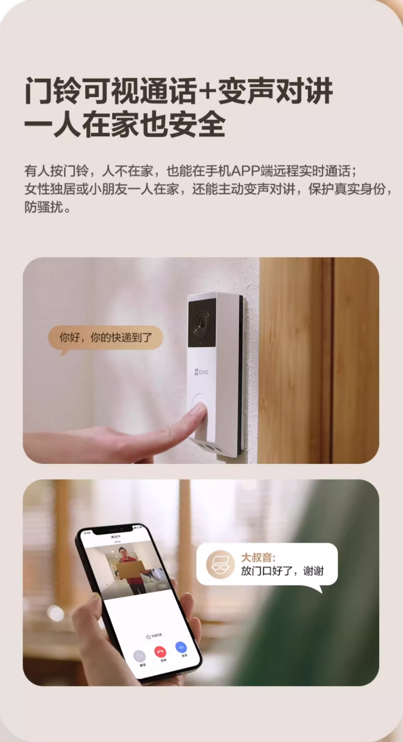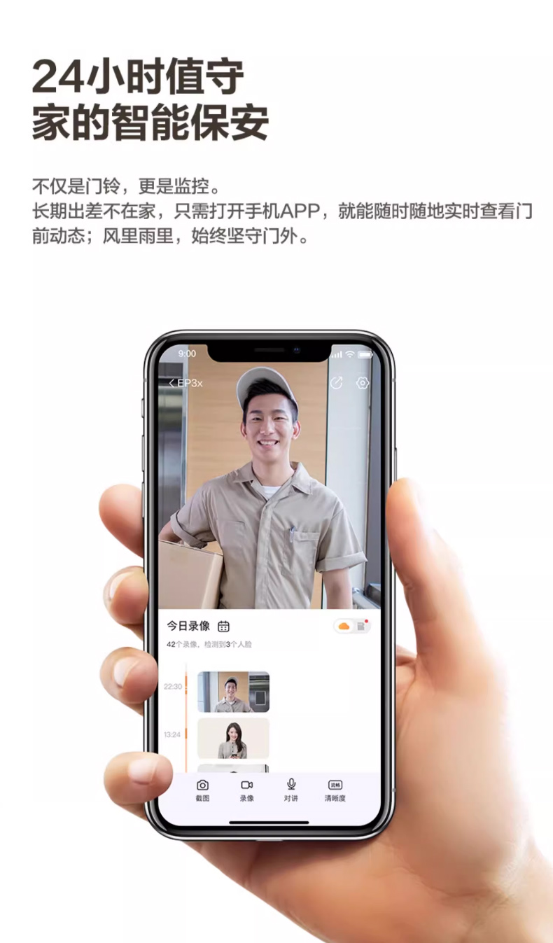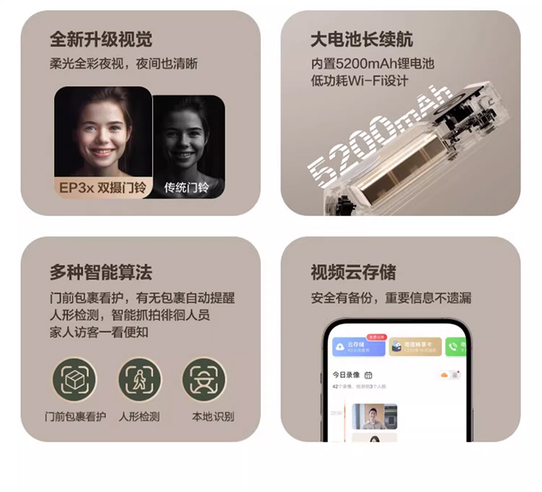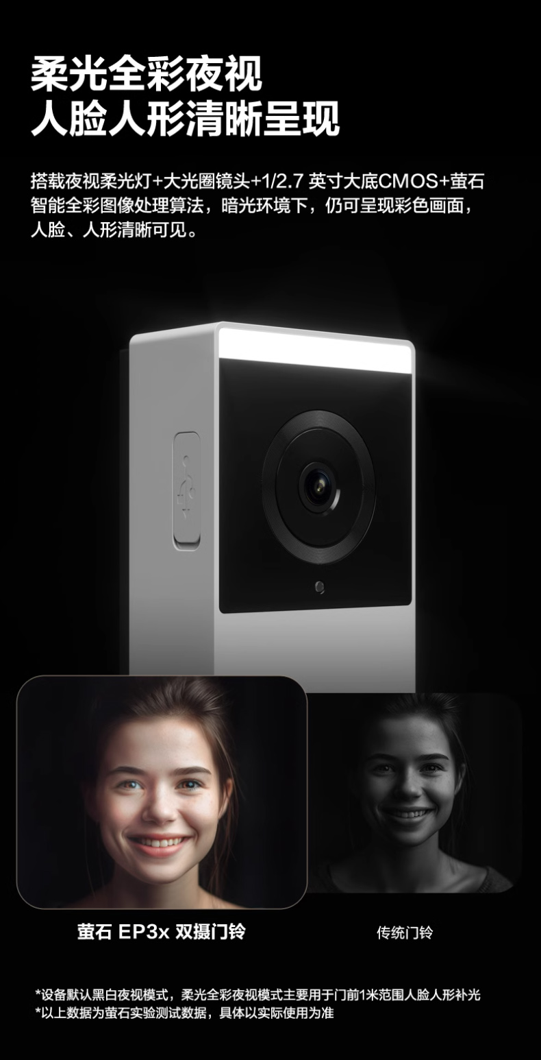 萤石EP3x双摄可视门铃 长续航 超清 智能猫眼 WiFi 64G