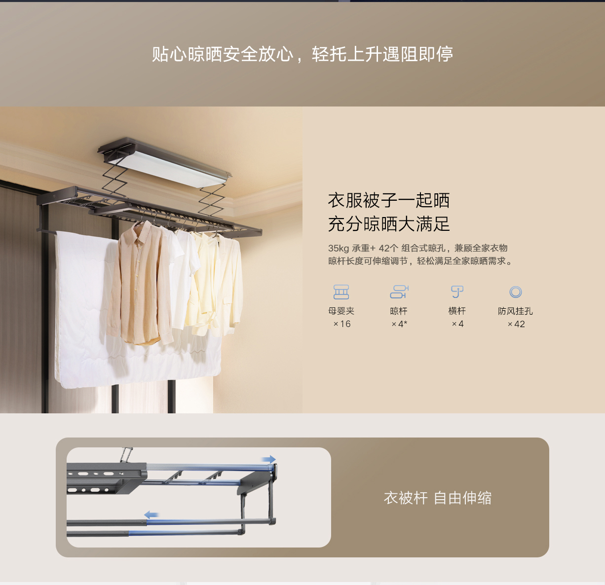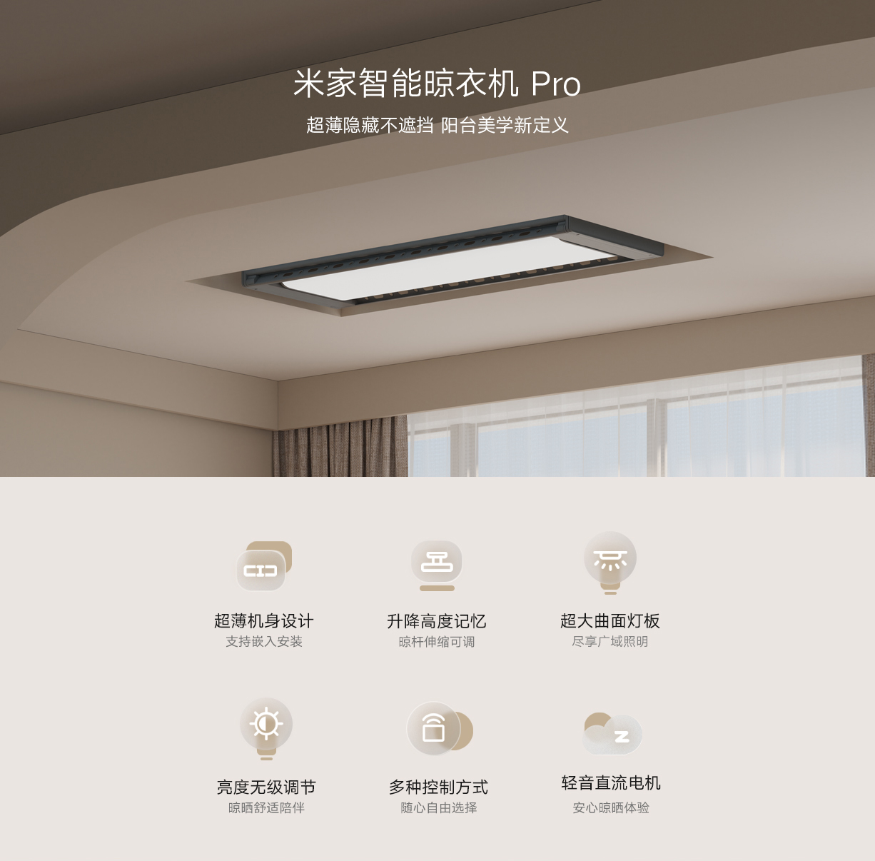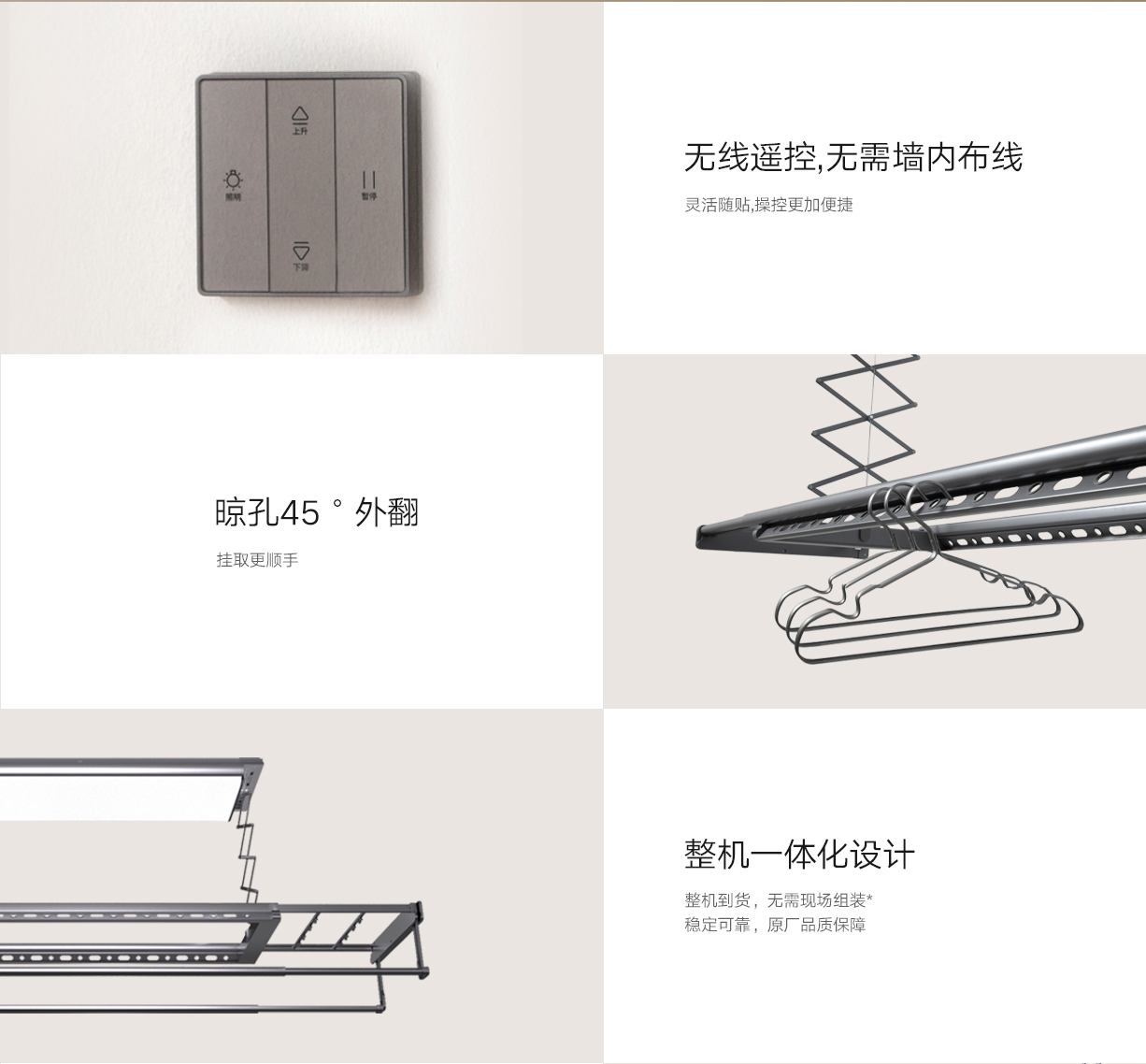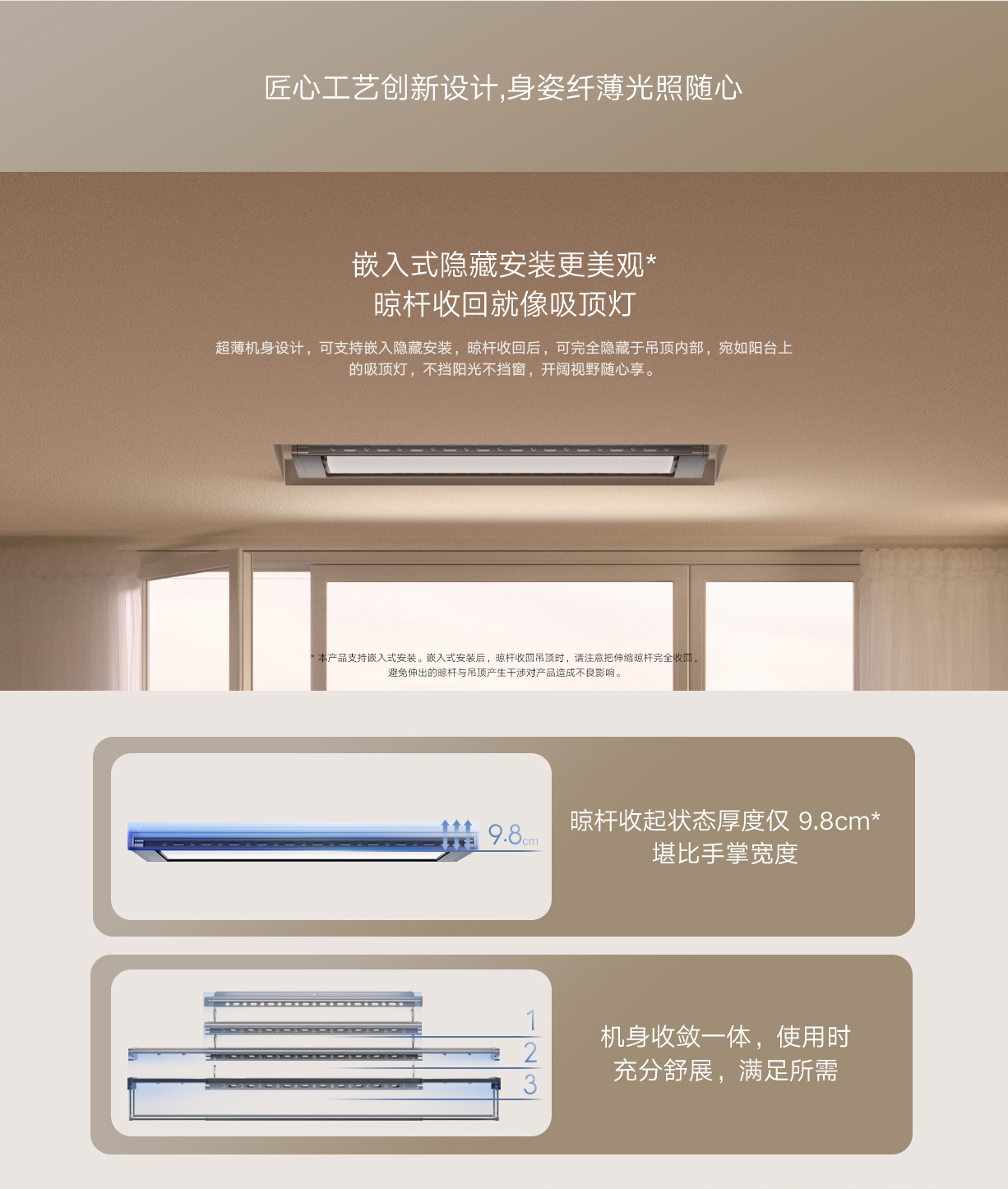 真隐藏,晾杆不外露 | 极致超薄,美观省空间 | 超大屏LED灯,优化视觉体验