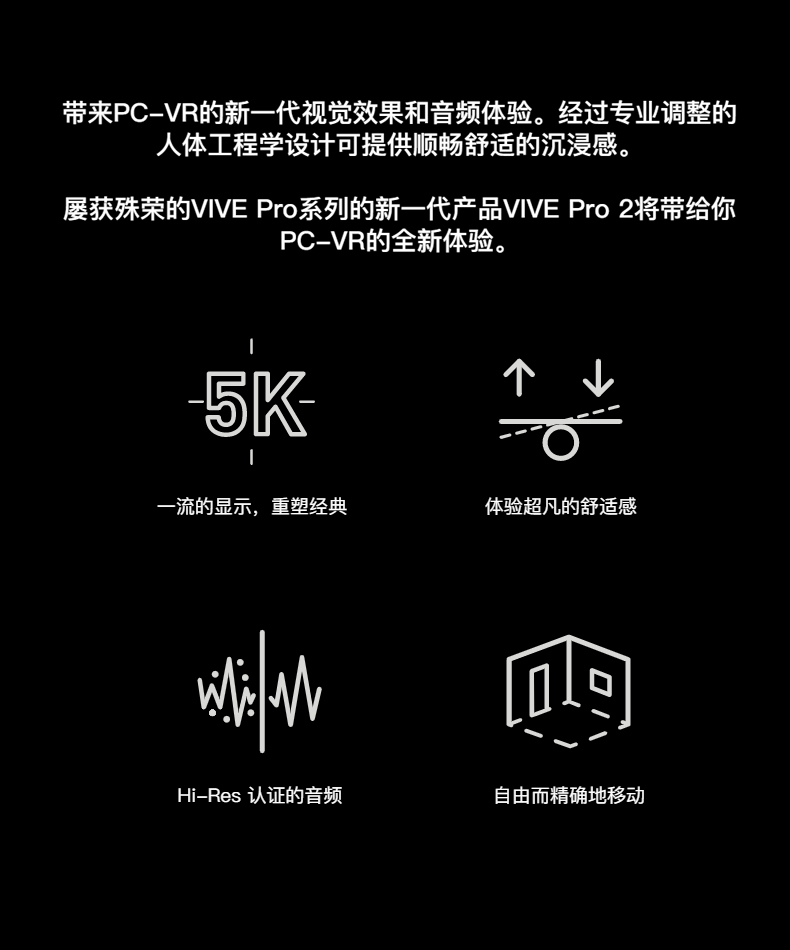 [5K新品]HTC VIVE Pro 2 单头盔5K分辨率虚拟现实pc电脑VR眼镜steam家庭娱乐行业应用VR体感游戏