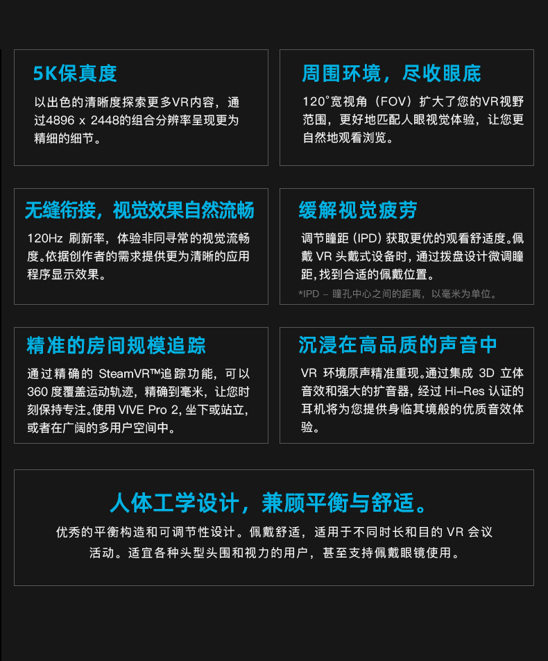 HTC VIVE Pro 2专业VR眼镜套装新款 5K分辨率120度视场角120Hz刷新率pcvr电脑steam
