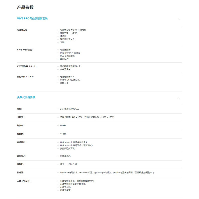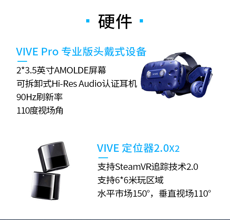 HTC VIVE Pro 1.0专业版基础VR套装 VIVE-P120 专业电脑VR游戏眼镜 兼容近视 steamVR
